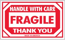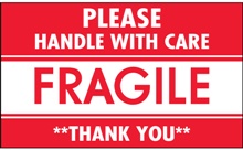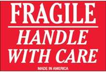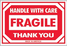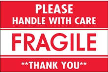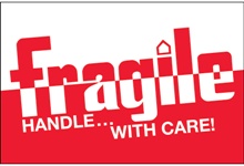 1 1/2 x 4" - "Fragile - Handle With Care" Labels
