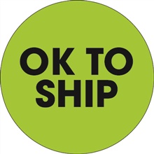 2" Circle - "Ok To Ship" Fluorescent Green Labels